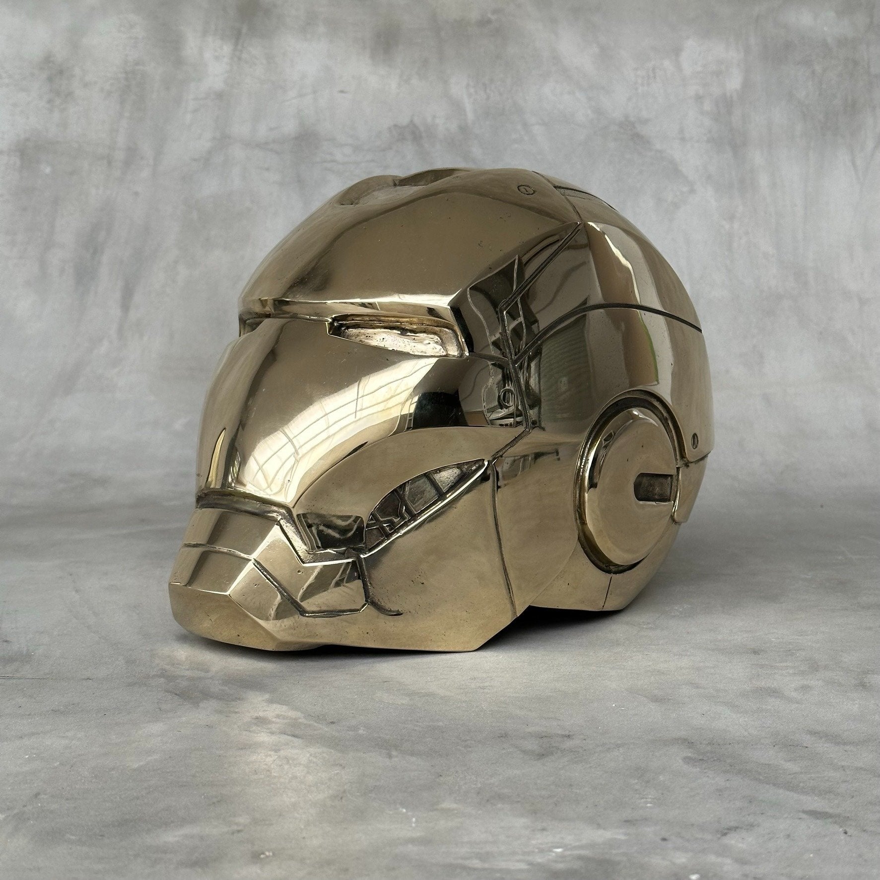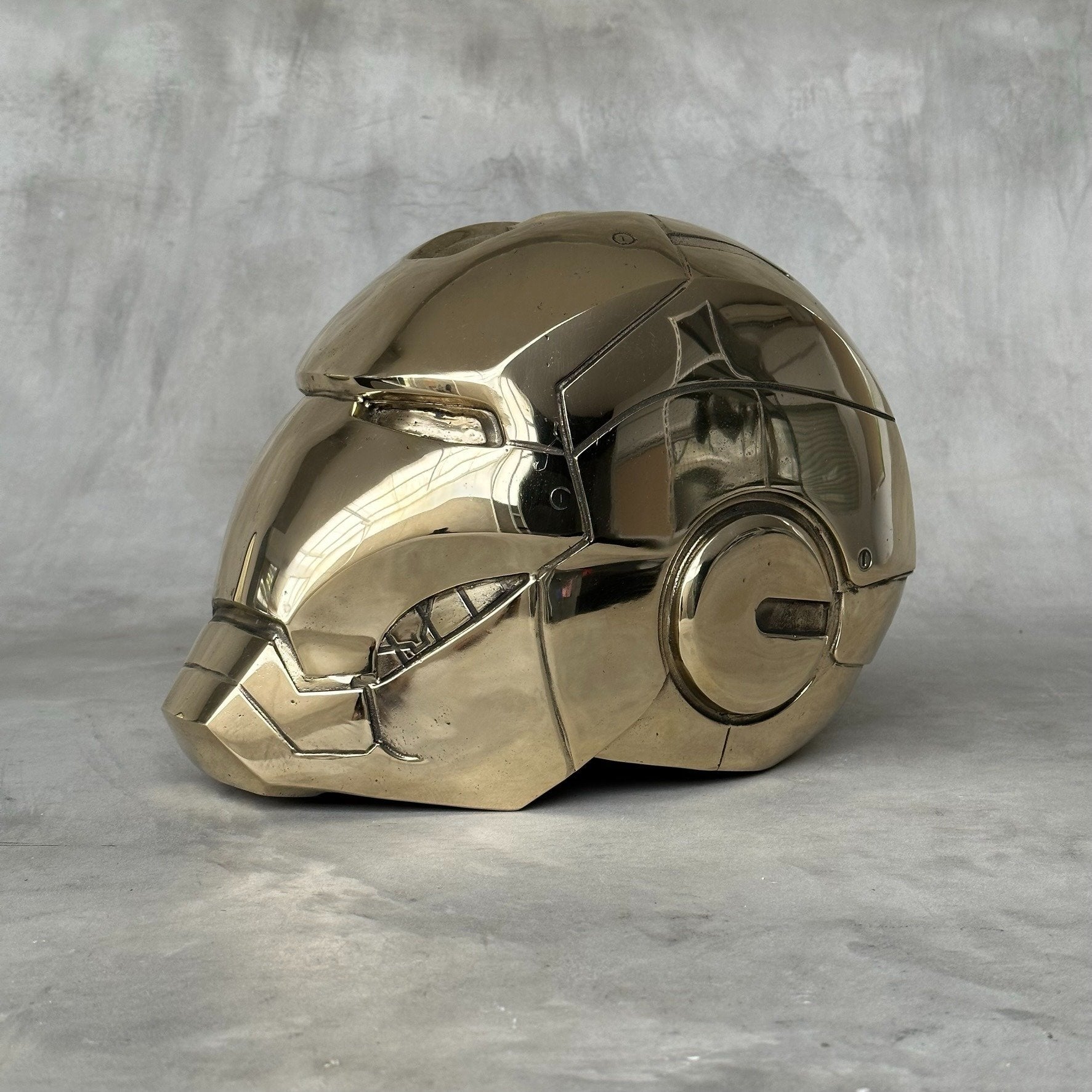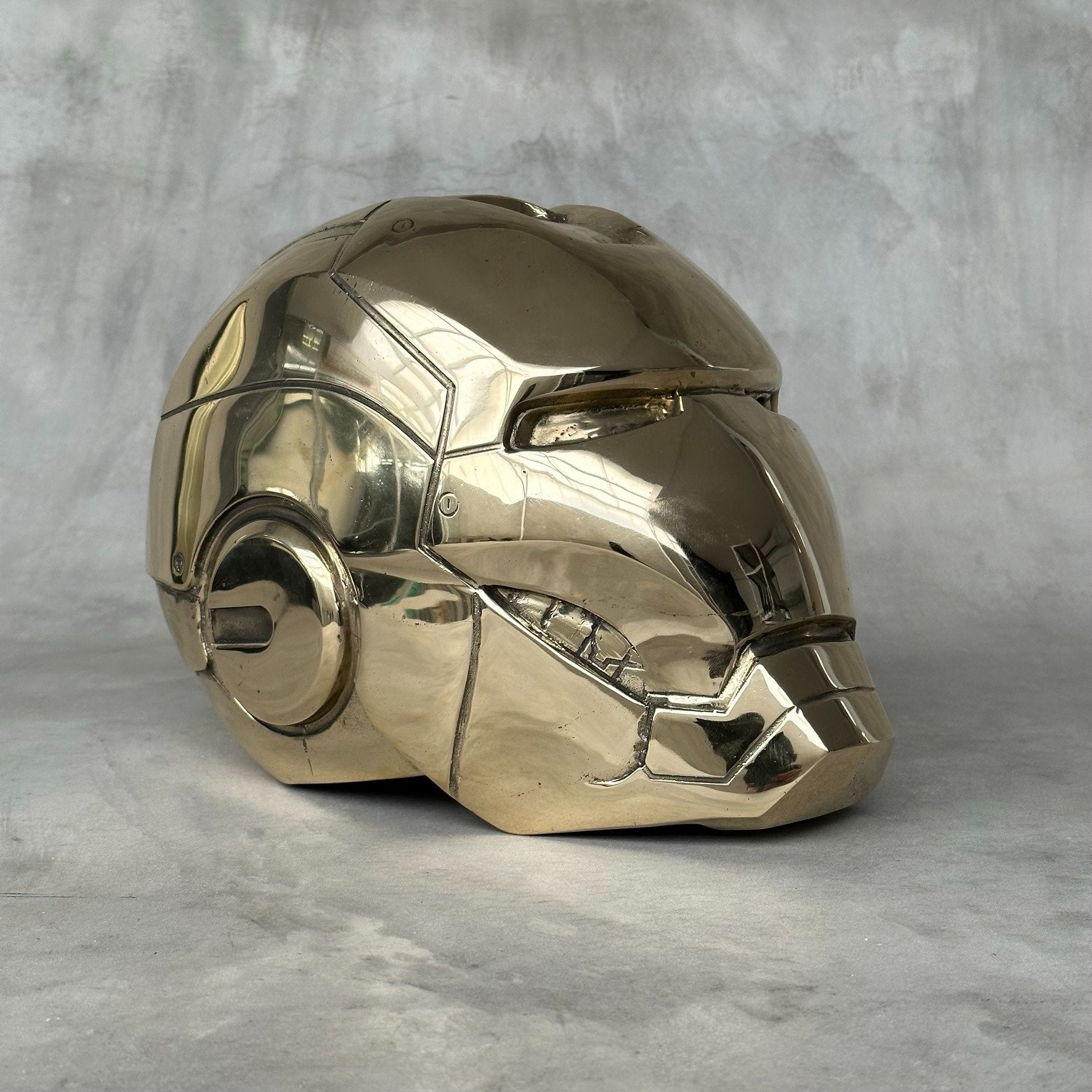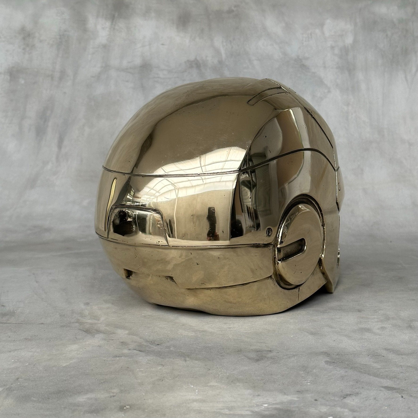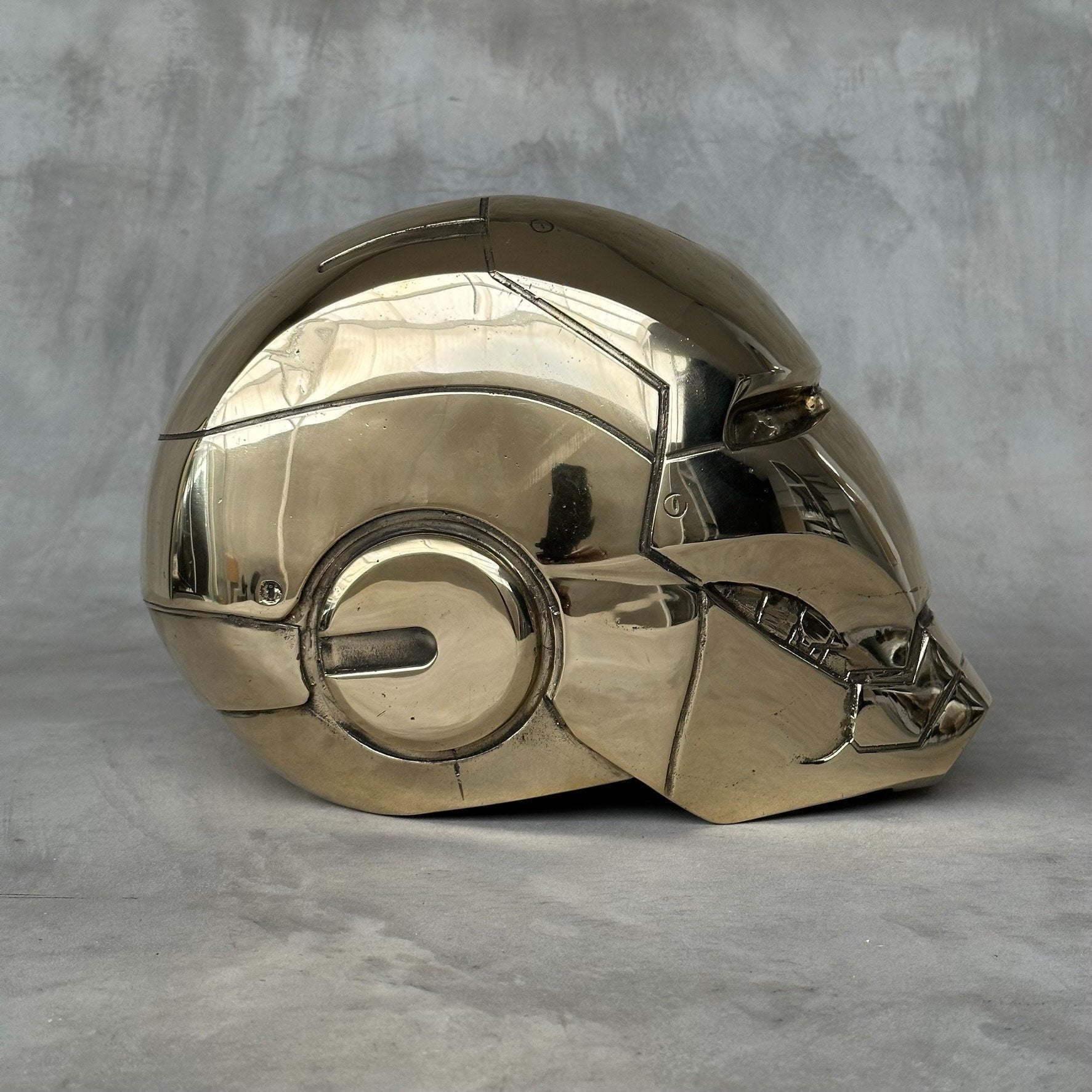 Cette sculpture en métal poli est une réinterprétation contemporaine du célèbre casque d’Iron Man. Mitch Richmond revisite ici l’icône de la pop culture en la transformant en une pièce sculpturale aux lignes nettes et à la surface miroir, qui reflète l’espace environnant et souligne la précision du travail artisanal.