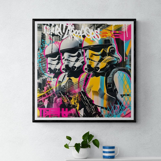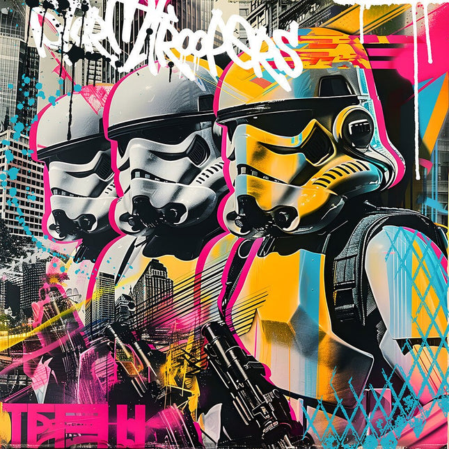 Cette œuvre utilise plusieurs techniques du Street Art en associant la lithographie sur papier Fine Art 300g/m² associée à de peinture acrylique apposée à la main par l'artiste.