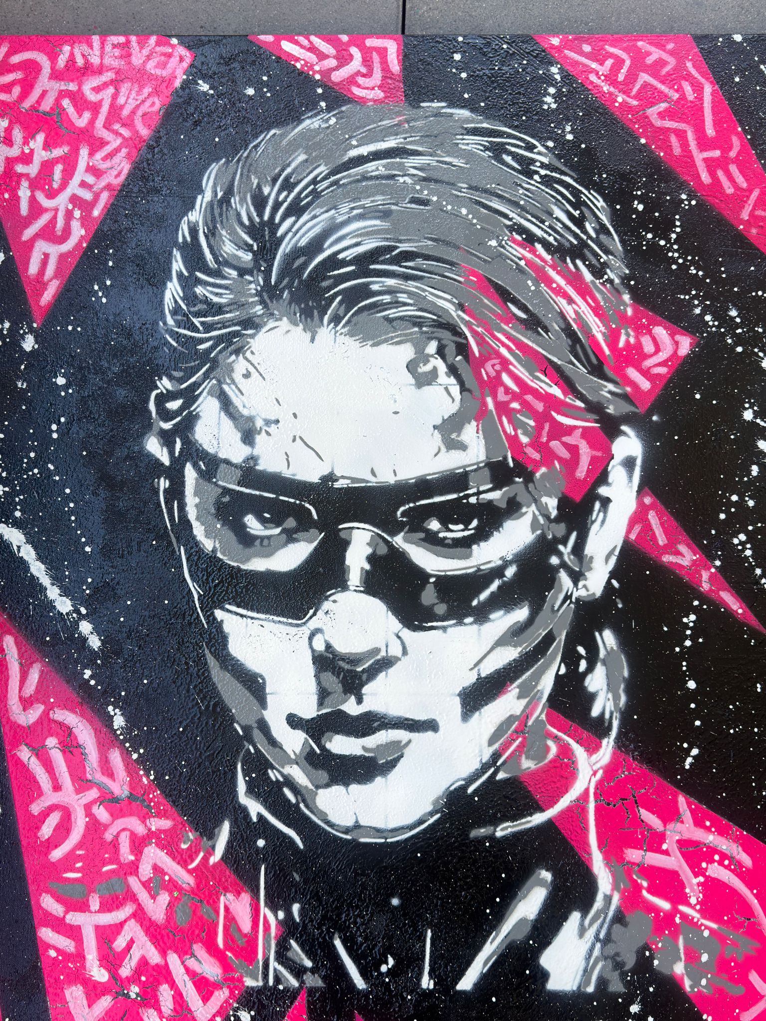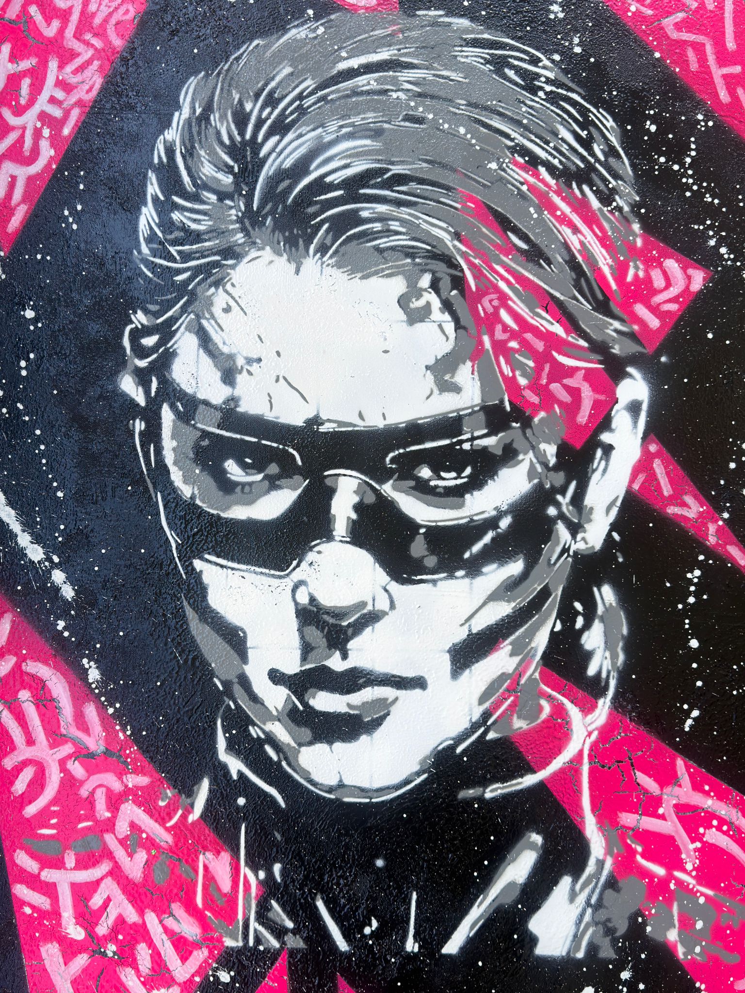 Avec Trinity, Willis semble interroger la multiplicité de l’être moderne – entre corps, machine et information – et proposer une figure à la fois protectrice, froide et transcendante, comme une divinité urbaine née du street art.